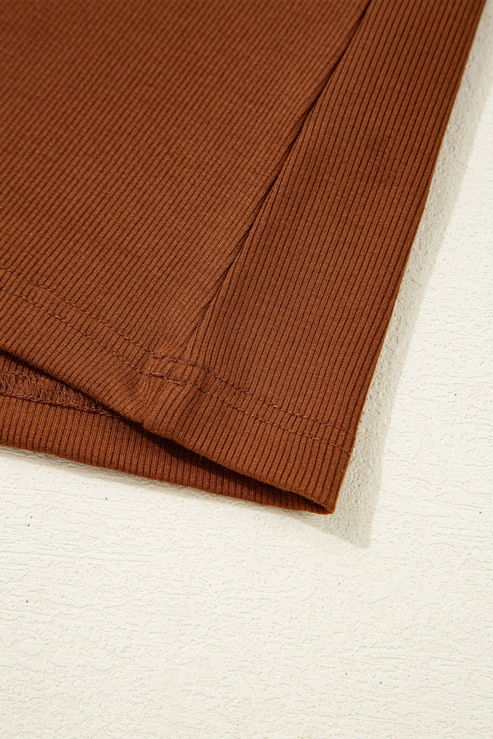 Leather Ruffle Sleeve Patchwork Round Neck Blouse