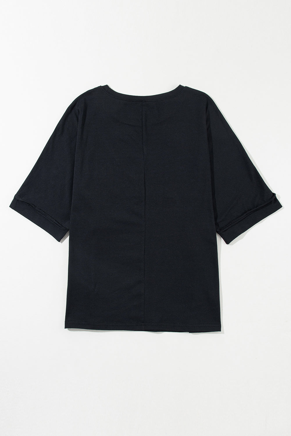 Black MAMA Chenille Patched Crew Neck T Shirt