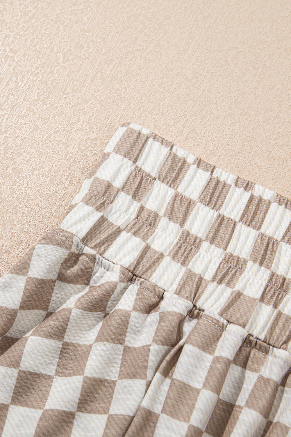 Brown Checkerboard T Shirt and High Waist Skorts 2 Piece Outfit