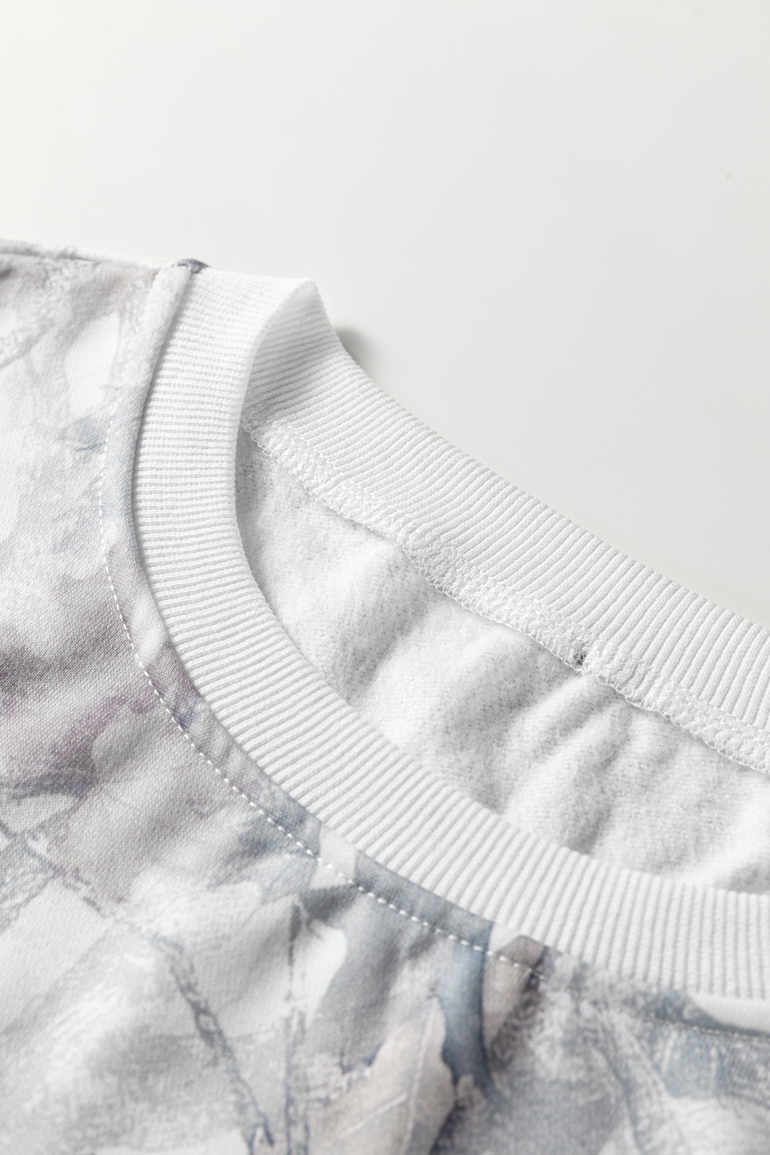 Camo Print Baggy Pullover Drawstring Shorts Set