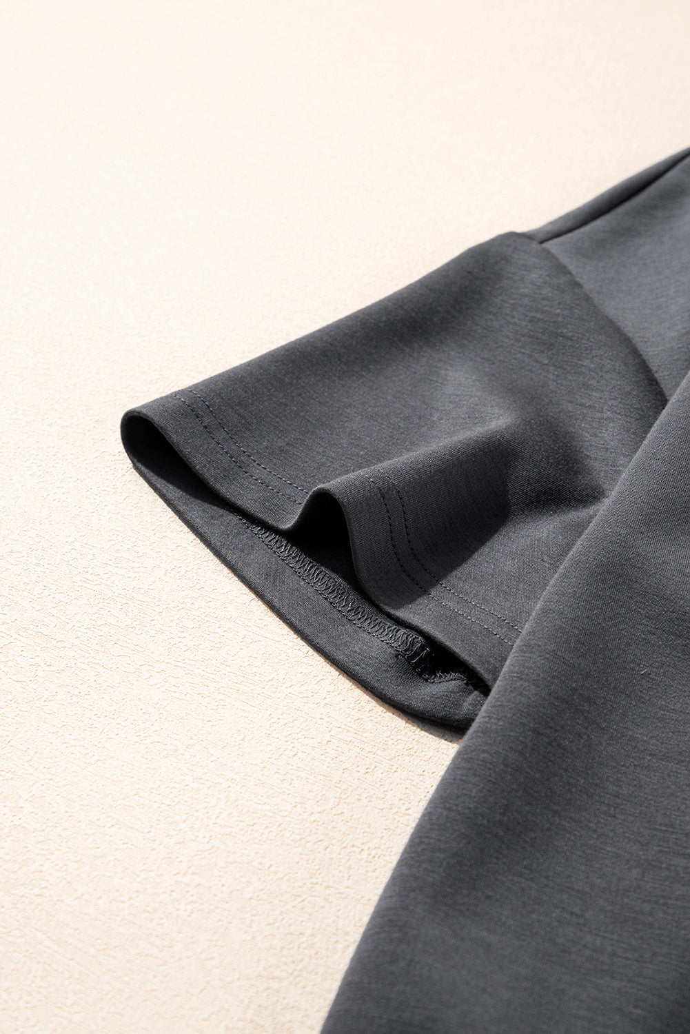 Dark Grey Drawstring Side Crewneck Tee and Loose Pants Set