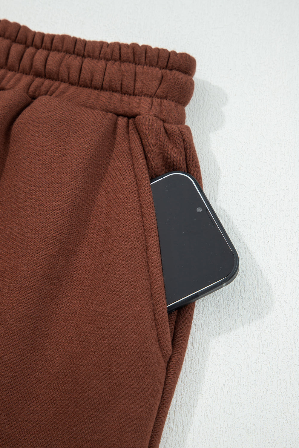 Fleece Lined Leopard Drawstring Elastic Waist Solid Pants