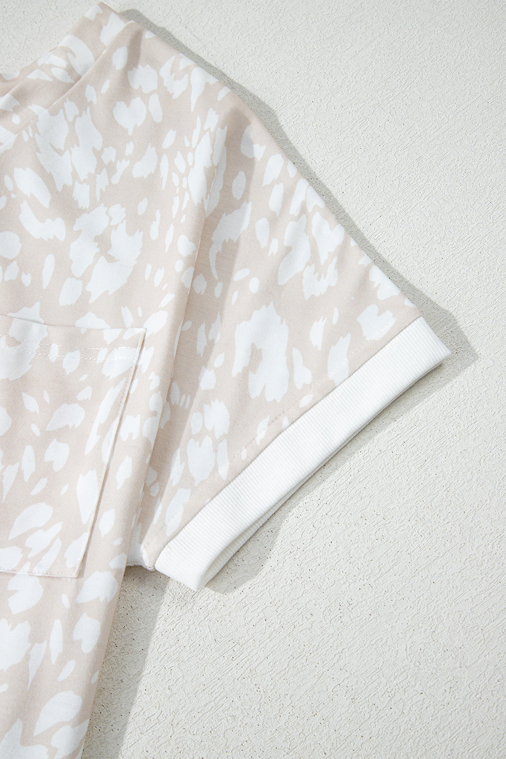 Khaki Leopard Print V Neck Side Slit Loose Fit T Shirt