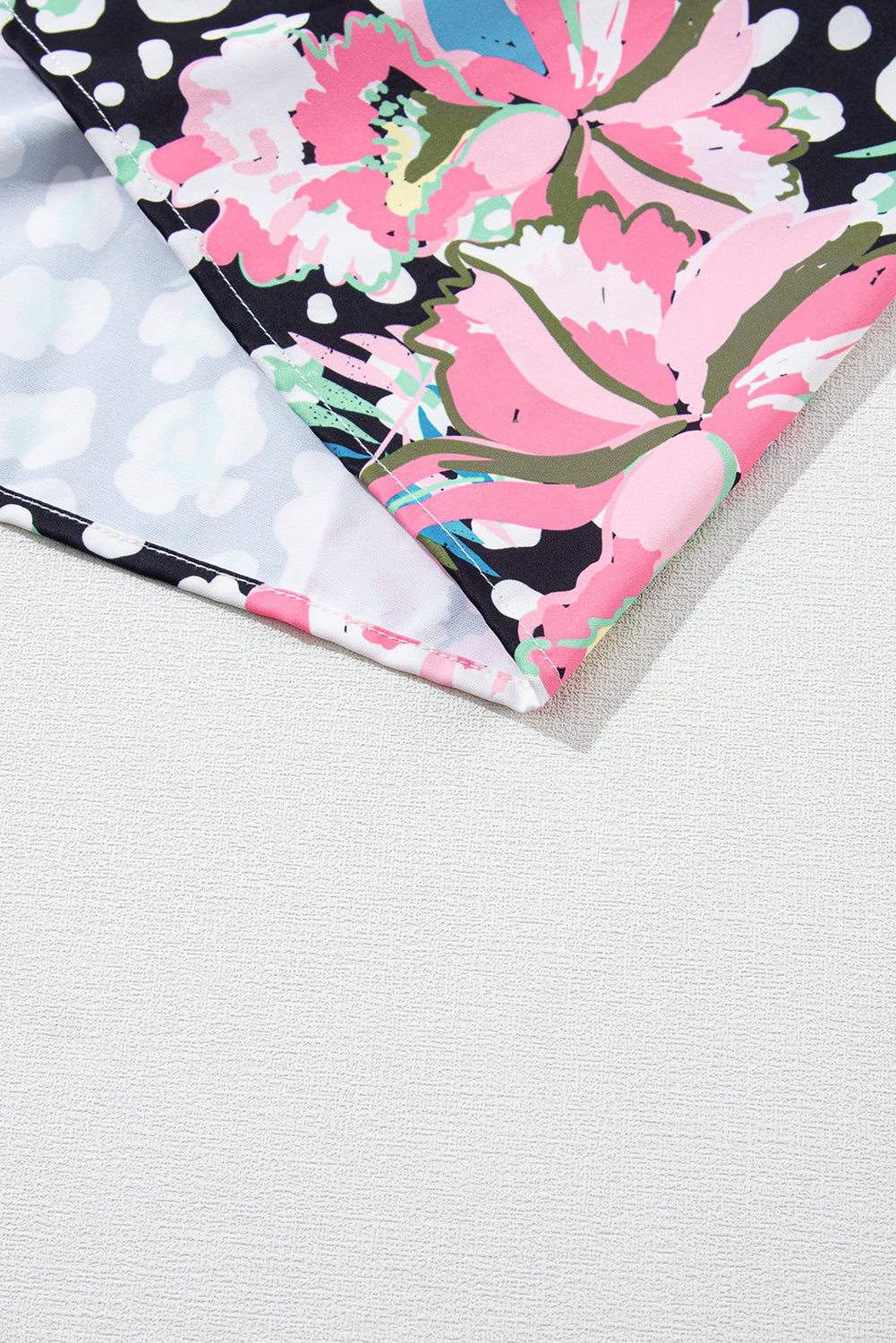 This short sleeve dress is perfect for warmer weather or for layering with jackets or cardigans - With a combination of floral prints, creating a bold and eye-catching design