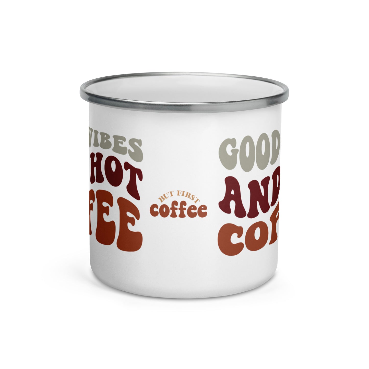 Enamel Mug | But First Coffee | Good Vibes And Hot Coffee