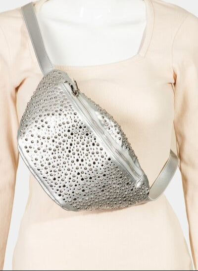 This bag displays a vibrant studded fanny pack sling style. Delight in the intricate details that make this accessory an essential element in expressing your fashion identity.