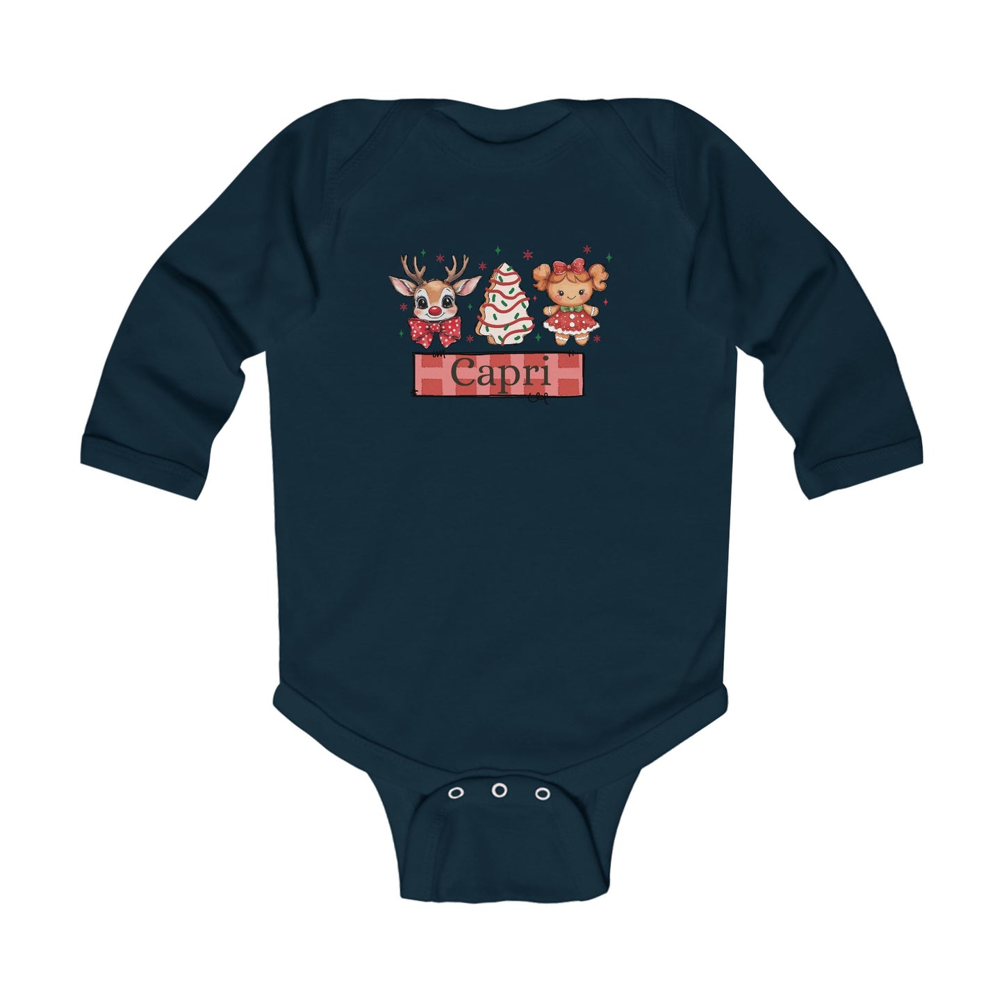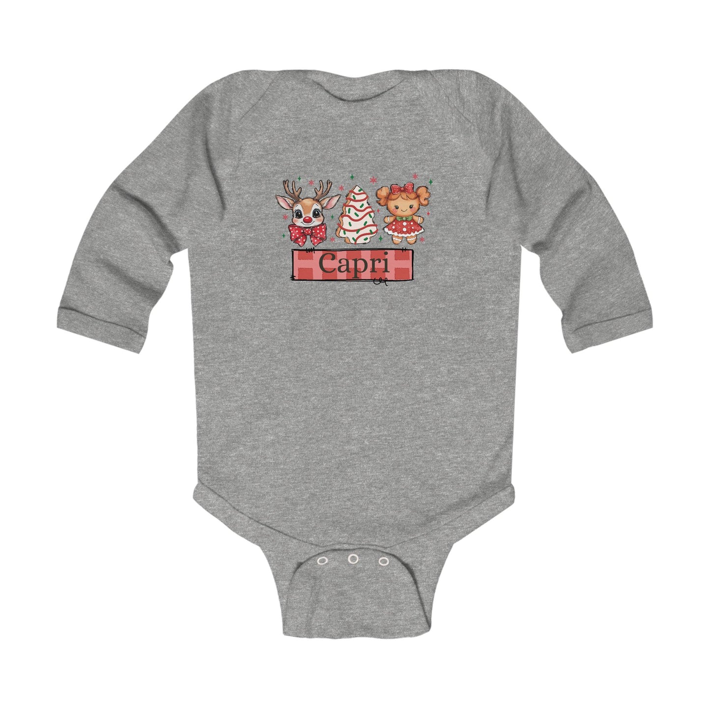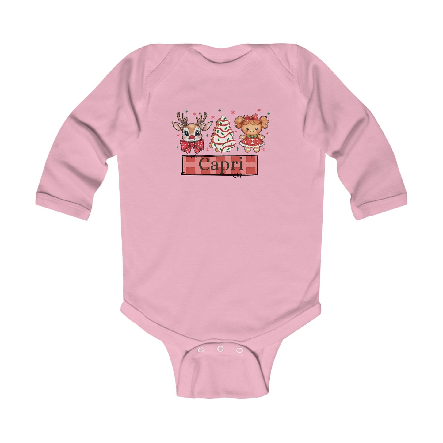 Infant Long Sleeve Bodysuit | Custom Name Christmas Cake Snack