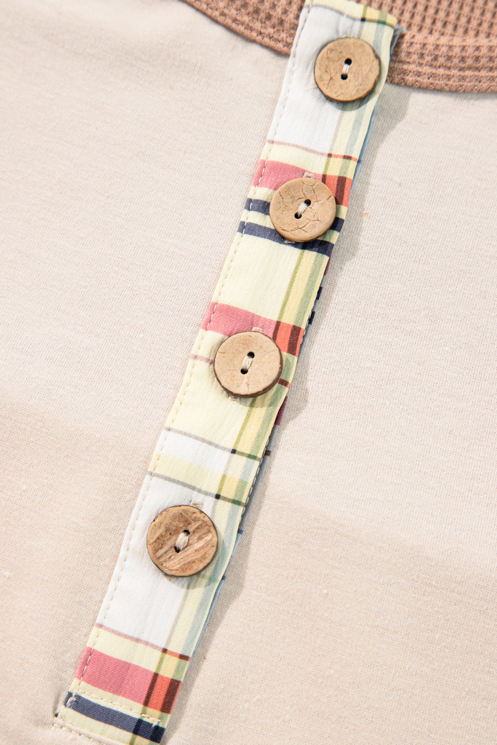 The curvy top features a timeless plaid pattern, adding a classic touch of style and versatility.