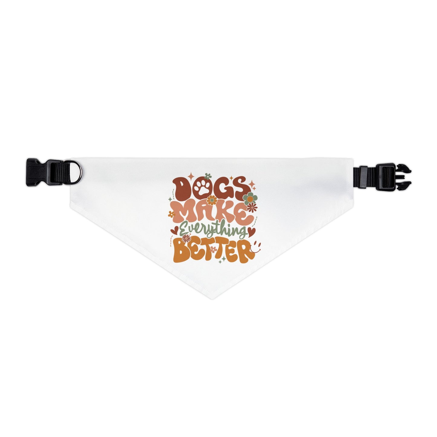 The pet bandana collar puts a fun spin on standard animal accessories. It is made of polyester duck fabric and is sublimation printable on one side. The bandana collar is available in four sizes to fit any pet. The construction and printing is durable enough for machine washing. The collar fastening helps to keep the bandana fitting correctly, even during play.