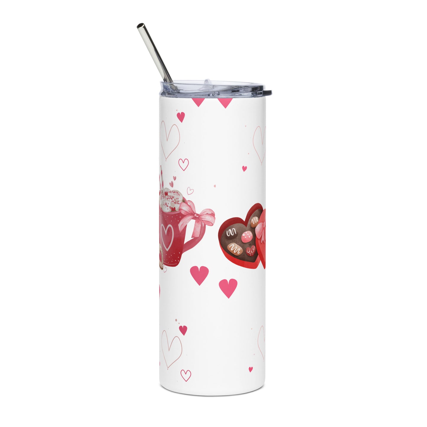 Enjoy hot or cold drinks on the go with this stylish stainless steel tumbler! This reusable tumbler with a metal straw is a perfect combo for hot or cold drinks at any time of the day.