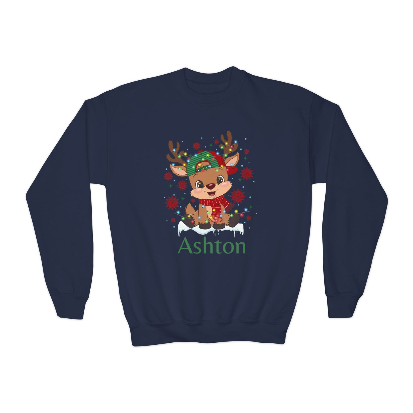 Youth Crewneck | Custom Name Sparkly Rudolph